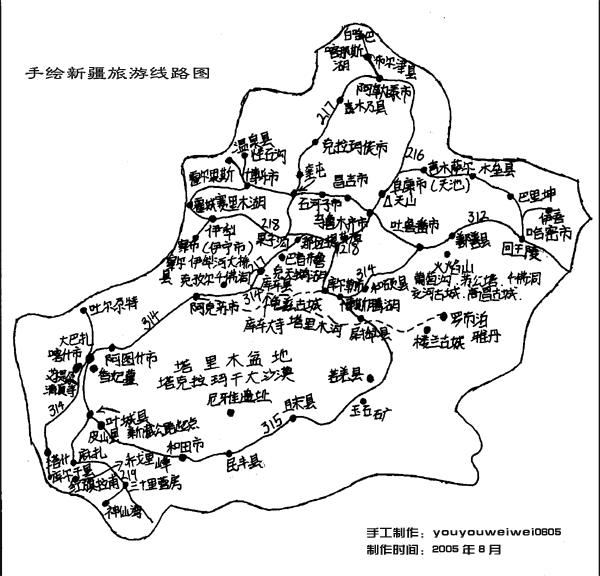 南通——>上海——>兰州——>敦煌——>吐鲁番——>乌鲁木齐——>奎屯——>伊宁——>克拉玛依——>乌鲁木齐——>南京——>南通