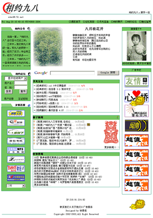 还有,我想说我也不愿意“相约九八”从此在网上消失。可日渐稀少的访问量早已说明大家已不再需要或者说我已没有能力做好“相约九八”,无论是什么原因,在现阶段,“相约九八”是没有存在的理由了。
