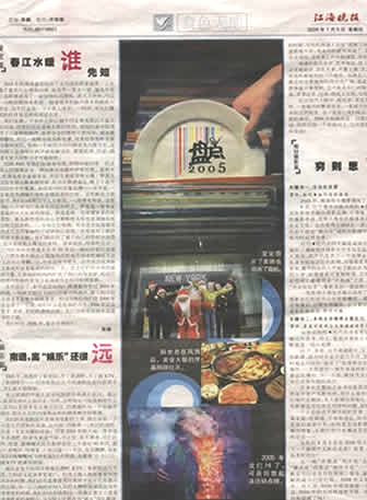 早上二毛拿了一张元月五号的《江海晚报》给我,说回去翻了半天,最后竟然在一月五号的那张上找到了;我就奇怪了,照片登在五号的报纸上,四号那天小梅怎么说看到了。再仔细看看报纸上的这张合影,虽然我只看得到我的一双眼睛,不过老婆的笑容还是很灿烂的。呵呵,不管怎么说,这张报纸我还是要好好的保存起来。相信多年以后再翻起这张报纸,我们定会别有一番滋味在心头。