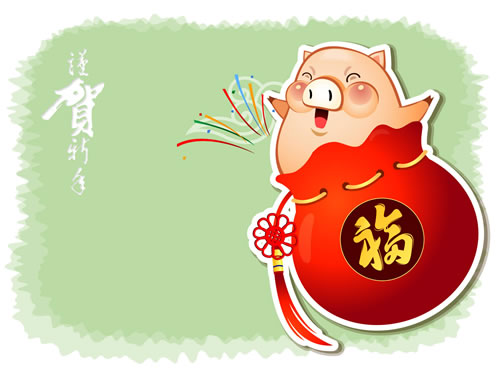 同时送给大家一幅关于猪年的长楹联,以及许多张可爱的猪年桌面。